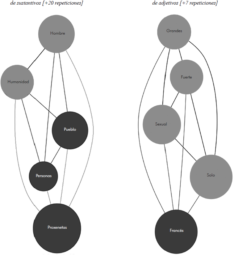 El principal hallazgo del análisis computacional de las redes semánticas obtenidas al analizar las sátiras de Jean Seul de Méluret el Libro del Desasosiego y otros corpus pessoanos con métodos convencionales de la lingüística computacional, es que las redes semánticas son de difícil interpretación. Digamos que hay poca señal y mucho ruido. Por citar un caso concreto en el Libro del Desasosiego: más de mil palabras – con sus frecuencias respectivas – implican negación, lo que confunde a las redes semánticas construidas con el método de “Statistical Neighboorhood Embedding”. Sería necesario hacer una corrección de frases como “no soy feliz” que sería mejor sustituir por “soy infeliz”. El mismo problema representa el uso frecuente uso de ironías y oxímorones. Estamos frente al núcleo de la poética del poeta-pensador, para quien la ironía era el arte superior y el oxímoron su figura retórica más recurrida (Jakobson, 2007). No obstante, ante las redes semánticas de este poema en prosa comenzamos a detectar ciertas asociaciones estadísticas interesantes respecto a la forma que fueron combinadas las palabras.